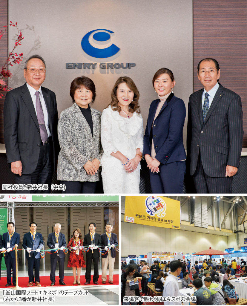 企業永続のため「さらに進化を目指し、新たなビジネスの柱を立てていきたい」と特に人材育成に力を入れる。フードエキスポの責任者には新入社員を抜擢。数々の壁を乗り越えることで成長につなげた。また、これを縁に日本語が堪能な現地の女性スタッフを正規採用し、韓国とのパイプ強化につなげた。今後も事業を通じ社員が成長し、ビジネス領域を広げていく。自身も福岡第一ライオンズクラブの会長就任が決まり、来夏から新たな挑戦が始まる。
