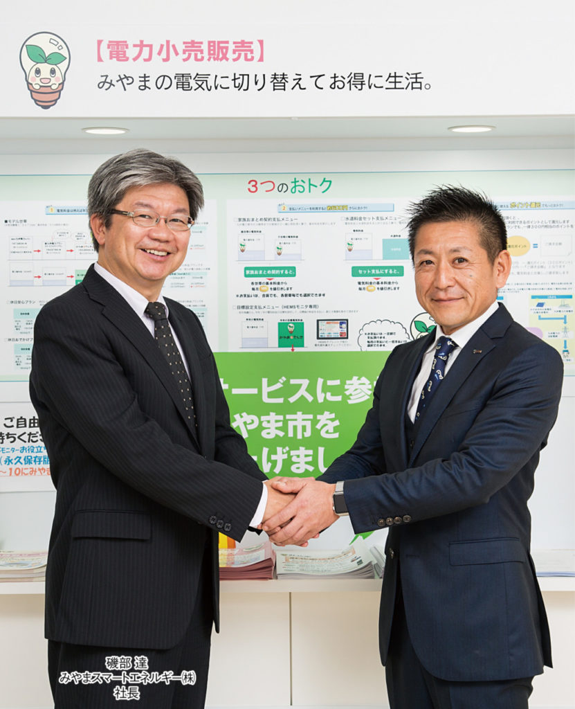 しかし、新電力を地域の一企業だけで運営していくには多大なコストがかかる一方、地域への経済的な波及効果も低い。そのため、同社では筑後地方の自治体や企業を巻き込んだ「地域広域連携」を事業の柱に掲げる。第一弾の取り組みとして、全国初の自治体新電力として話題となっている隣町の㈱みやまスマートエネルギー(みやま市、磯部達社長)との提携を発表。みやまSEはすでに同地区を中心に1000件以上の契約件数を持ち、他自治体との電力融通にも乗り出すなど広域連携の先駆的な存在だ。「将来的には八女市も自治体や地元企業が主体となって運営していく仕組みが必要。八女、みやまという地区にこだわらず、“チーム筑後”をつくりたい」と中島社長は大きな目標を掲げた。